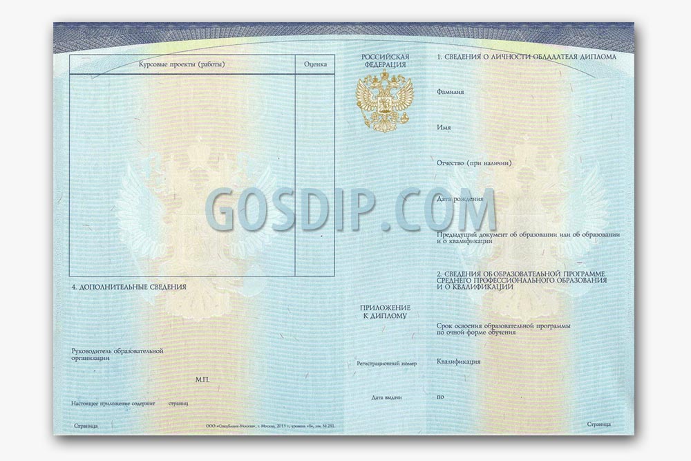 К дипломам о высшем, среднем и начальном профессиональном образовании прилагается специальный вкладыш или более привычное название приложение к диплому. В этом документе указывается наименования изученных дисциплин с оценками, список практик с оценкой, госэкзамены и выпускная квалификационная работа. В зависимости от периода приложение к диплому отличается внешним видом, что можно видеть на фотографиях выше. Согласно приказам различных лет, оно имеет образец установленного формата и печатается только на защищенной бумаге (кроме приложений к дипломам СССР) на одном или 2-х листах.