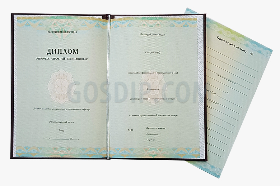 На нашем сайте Вы можете купить диплом о профессиональной переподготовке после получения высшего или среднего образования. Подходит для тех, кто уже имеет опыт работы в какой-то сфере деятельности, но основное профессиональное образование было получено по другому направлению. Диплом о переподготовке гарантируем Вам сохранение должности или трудоустройство туда, где требуется профильное образование. Обращайтесь, сделаем качественно, быстро, доставим по Санкт-Петербургу курьером уже на следующий день.
